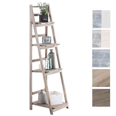 Mendler Leiterregal Goiana, Regal Standregal mit 4 Korbschubladen 101x30cm, Shabby-Look, Vintage ~ weiß