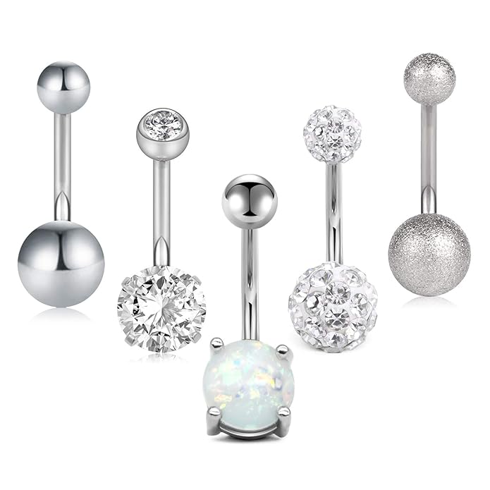 FECTAS 2er Silber Bauchnabelpiercing Barbell Set 14 Gauge Chirurgenstahl Piercing Bauchnabel Schmuck