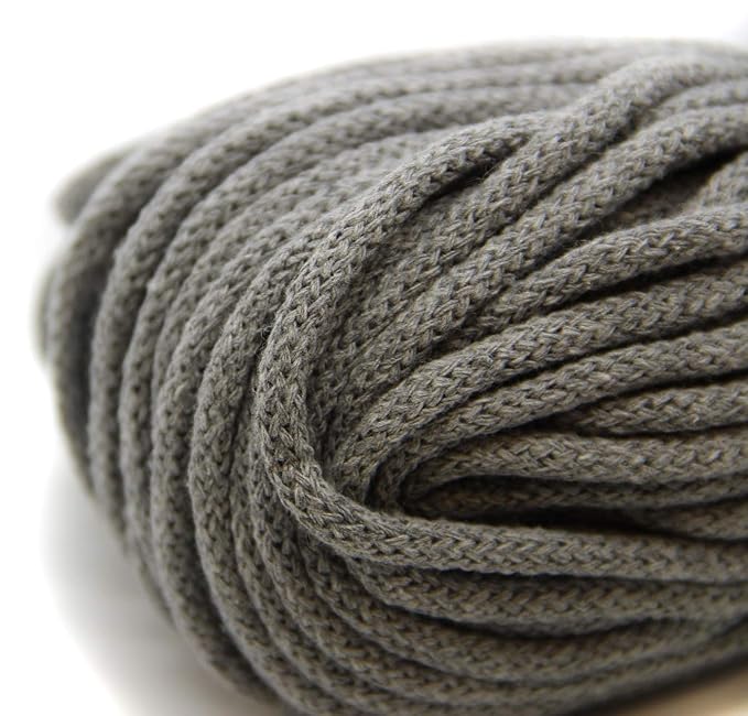 ? FEIN & HOCHWERTIG: Kordel aus 70% reiner Baumwolle und 30% Polyester, Dicke 5mm. Schnur ist reißfest, langlebig, elastisch, hautfreundlich und dabei weich und vom Gefühl her sehr angenehm anzufassen. ? SPAß MIT KINDERN: Baumwollkordel für Kinderspiele und Basteln eröffnen viele kreative Möglichkeitem, um mit Ihren Kindern Freizeit zu verbringen. Ausgezeichnete Baumwolleigenschaften machen die Arbeit angenehm und fördern die manuellen Fähigkeiten. ? VIELSEITIG VERWENDBAR: Für Handarbeiten, nähen, häkeln, stricken, bei Kleidung, als Tragebänder im Turnbeutel geeignet, bei Kapuzen, Jogginghosen, Taschen, Rucksäcken, Schuhen und modischen Accessoires, für Makramee knüpfen. Als Dekokordel für dekorative Geschenkverpackungen. ? FARBENVIELFALT & LÄNGE: Wählbare Farben, auch mix: lachs, dunkelblau, grau, hellgrau, Fuchsia, Kornblume, mint, dunkelrot, weiss, schwarz, lila. 50m / 100m Baumwollgarn an einem Stück geliefert. Farben können aufgrund unterschiedlicher Monitor-Einstellungen abweichen. ? EINFACH ZU VERARBEITEN: Baumwollschnur ist gleichmäßig in Durchmesser und Wicklung. Gut biegsam, sodass die Schnur leicht geknotet und geflochten werden kann. Bei Belastung bleibt sie formstabil, fest.