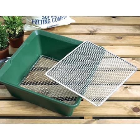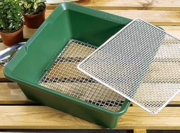 Dieses Erdsieb leistet mit seinen zwei im Handumdrehen auswechselbaren Einsätzen (4 und 6 mm) gute Dienste beim Aussieben von Steinen, Laub und groben Erdklumpen, wenn Sie z.B. feine Erde für die Anzucht von Jungpflanzen vorbereiten wollen