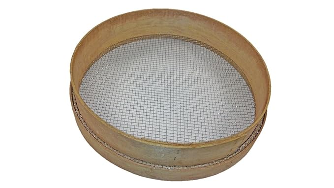 Durchmesser (gesamt): ca. 40-43 cm Höhe: 9.5cm, Maschenweite: 10 mm Mit traditionellen Holzrand Ideal zum Entfernen von Steinen oder Geröll aus Erde