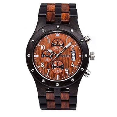 100% Naturholz Material: Unsere Uhren sind handgefertigt aus 100% natürlichem Holz, das seit mehr als hundert Jahren aus Afrika oder Vietnam gewachsen ist. So ist das Holz selten und die Holzuhren sind wirklich kostbar für die Sammlung und die Holzuhren sind so Leichtgewicht, dass Sie sich entspannt fühlen, wenn die Uhr auf Ihrem Handgelenk, und es kann leicht mit Ihrer Kleidung abgestimmt werden Multifunktion: Die Uhr setzt mit Tagesanzeige und leuchtenden Händen, die für den Einsatz bequem ist. Der japanische Quarzwerk und die Batterie garantieren eine präzise Zeit und lange Lebensdauer Hohe Qualität: Der Tischspiegel besteht aus Saphirglas, das eine Art hochhartgehärtetes Glas ist, was es schwierig macht, Abrieb und Fading zu machen. Die Schnalle wird aus Japan importiert und aus Edelstahl 316 hergestellt, was hochwertig und langlebig ist Perfektes Geschenk: Wegen 100% natürliches Holzmaterial ist jede Uhr von einander verschieden, also ist es ein prerfektes und einzigartiges Geschenk für Ihre Verwandten oder Freunde sogar für youselves Produkt-Garantie: Alle Uhren kommen mit Garantie und 100% Zufriedenheit garantiert. Sie müssen sich nie um Kundendienst kümmern. Wenn irgendeine Hilfe, die Sie benötigen, treten Sie mit uns bitte in Amazon Mitteilung in Verbindung, wenn Sie frei sind
