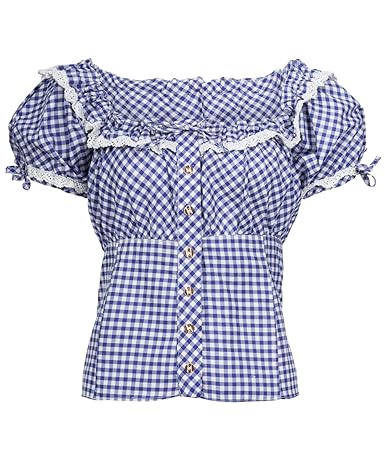Größenangepasste Länge: ca 68 - 78 cm Trachtenbluse als Trägerform Oberstoff: 100% Baumwolle Pflegehinweis: nicht Trocknergeeignet, Maschinenwäsche Modellnummer: 717586 Mit verstellbaren Trägern und Vichykaro Knopfleiste mit Metallic-Knöpfen und weißem Spitzenband Schulterfreie Ärmel mit Spitze am elastischen Abschluss