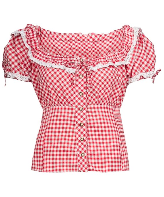 Trachtenbluse für Damen Farbe: rot - weiß kariert Material: Polyester Größe: M für Karneval und andere Anlässe › Weitere Produktdetails