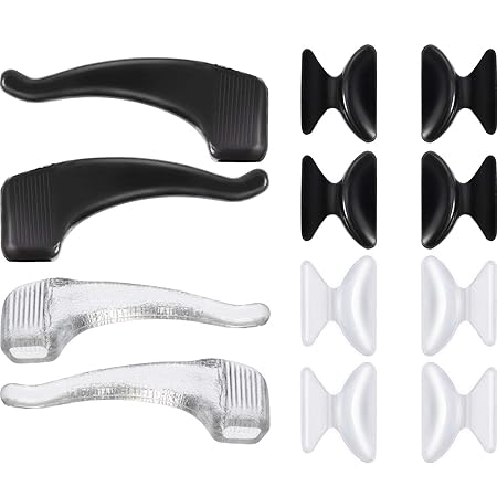 ? D SHAPE DEGISN Nasenpads: Diese D Shape Nasenpads bestehen aus weichem, leichtem Silikon, das für die Nasenhaut angenehm ist und nach dem Gebrauch keine Ohrenschmerzen verursacht ? ANTI-SLIP: 1,9 x 0,8 cm (0,75 x 0,31 Zoll) mit einer Dicke von 1 mm, Brillenpaste, erhöhen Sie die Höhe, um ein Abrutschen der Brille oder Sonnenbrille für immer zu verhindern einen festen Griff an der Brille ? AS EINFACH ZU VERWENDEN: Die Nasenpads sind selbstklebend für eine einfache Anwendung, leicht zu verkleben. Reinigen Sie die Rahmen vor der Verwendung von Öl und Schmutz. Je besser Sie sie reinigen, desto besser sie haften können sie besser haften und länger auf der Brille bleiben ? STRETCHY & Wide ANWENDUNG: geeignet für verschiedene Brillen wie Lesebrillen, Brillen, Sonnenbrillen, Brillen und auch für viele Arten von optischen Rahmen, Kunststoffrahmen ? 26-IN-1-PAKET: Wird mit 18 Paar Nasenpads, 6 Paar Ohrbügelhaken