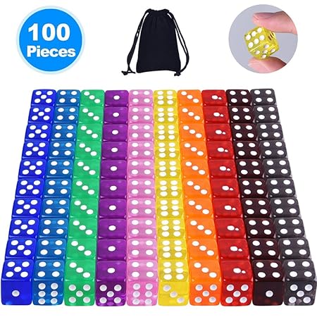 enthalten 100 stücke 6-sided würfel in zehn farben (jede farbe für 10 stück) die farben: schwarz, weiß, rot, braun - orange, gelb, grün, blau, lila und lavendel größe: standard 16mm (5 / 8 zentimeter) spiel würfeln, square corner aus umweltfreundlichen acryl - material mit einem kostenlosen tunnelzug würfel - tasche, dauerhaft und tragbare große würfel zu spielen, wie tenzi, lügner ist würfel, yathzee, ferdi, betrugsdezernat, casino und kinder unterrichtet mathe › Weitere Produktdetails