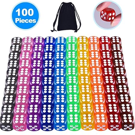 Enthalten 100 Stück 6-seitige Würfel in 10 Perlenfarben (jede Farbe für 10 Stück) Perlenfarben: Schwarz, Kaffee, Rot, Rosenrot, Orange, Grün, Blau, Dunkelblau, Lila, Weiß Größe: Standard 16mm quadratische Eckwürfel, hergestellt aus umweltfreundlichem Acrylmaterial Komm mit einer samtenen Drawstring Würfeltasche, frei und tragbar Dauerhafte Würfel für das Spielen von Spielen, wie Tenzi, Lügner Würfel, Yathzee, Farkle, Bunco, Casino und Teach Kids Math › Weitere Produktdetails