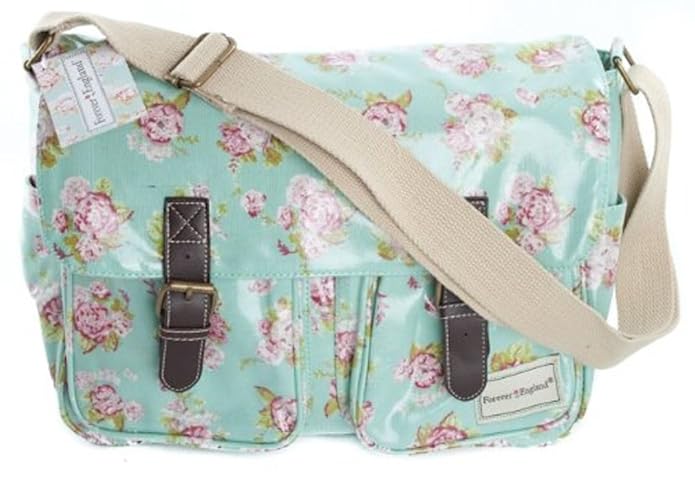 Schöne, praktische Handtasche, entworfen in England. Die Handtasche hat einen breiten Überschag. Dieser wird mit Magnetknöpfen, die sich an je einem Lederriehmen befinden, auf der Vorderseite geschlossen. Unter dem Überschlag befinden sich 2 kleine Taschen an der Vorderseite. Innen befindet sich in dem großen geräumigen Fach eine weitere große Reißverschlusstasche, sowie 2 kleine Taschen für Smartphones oder Etuis. An einer der kleinen Taschen befindet sich innen ein kleiner Karabinerhaken. Dort kann man beispielsweise seinen Schlüssel festmachen, damit er in der geräumigen Tasche nicht verloren geht. Hergestellt wurde die Handtasche aus beschichteter Baumwolle und sie ist gefüttert mit Baumwollstoff. Das Schulterband ist aus Kanvas und liegt ideal an der Schulter an. Größe: Länge: 34,5 cm, Höhe: 24,5 cm, Breite: 9,5 cm Material: Wachstuch, Baumwolle, Kanvas Pflegehinweis: Abwischbar mit einem feuchten Tuch.