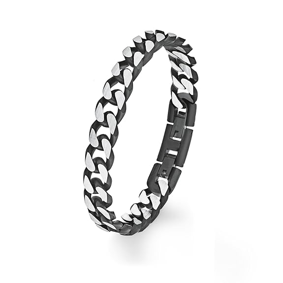 ? ZEITLOSES DESIGN - Die ausgefallene Panzerkette ist mit seinem klassisch Design ein besonders schönes Schmuckstück zu jedem Outfit die passende Ergänzung. Die Panzerkette wird mithilfe eines handlichen Karabiners geschlossen. ? MATERIAL: Edelstahl—Hochwertiger Edelstahl. schwarz eloxiert ? GRÖßE-- Gesamt Länge: 8'(21cm); Breite: 0,39'(1cm) ? LIEFERUMFANG: 1x Armband. Das Armband kommt im hübschen Geschenkbeutel. ? Dieses Schmuckstück in stilvollem Schwarz ist eine exklusive Ergänzung Ihrer Garderobe
