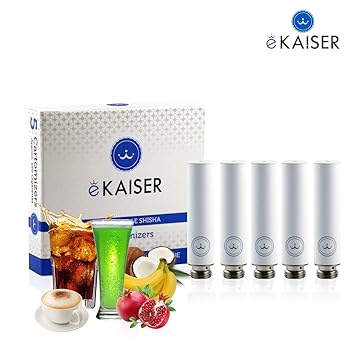Austauschbare Cartomizer Erhältlich auf Amazon, mit mehreren Geschmacksrichtungen. Nikotinfreies Produkt. Besorgt über Ihre Zufriedenheit, kommt eKaiser mit einer Geld-zurück-Garantie. TPD registriert