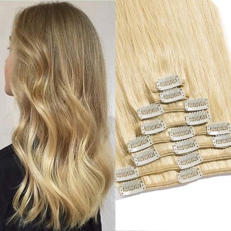 18 Clips Vorgenäht: Mit rutschfesten Silikonclips können Sie die Extensions Echthaar bequem in 5 Minuten anlegen oder entfernt, unsichtbar, hygienisch, wiederverwendbar, wird Ihrem Haar keinen Schaden zufügen.