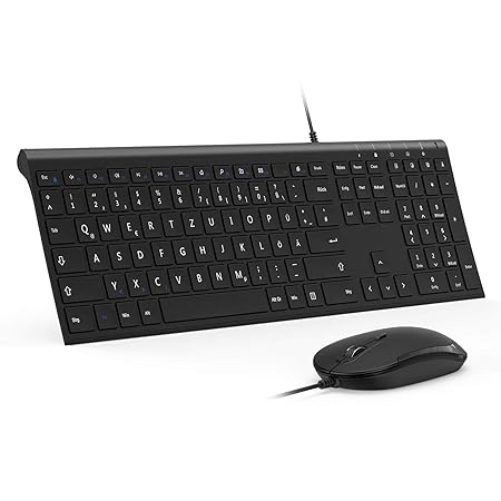 STABILE VERBINDUNG: Über eine feste 2.4 GHz Signalverbindung kannst du auf nahezu acht Meter Distanz arbeiten. Ein nano Empfänger verarbeitet blitzschnell das Signal der Maus und der Tastatur. NOCH BEQUEMER: Flache Tasten ermöglichen flüsterleises Schreiben und fantastischen Komfort. (Das Keyboard besitzt das deutsche QWERTZ Layout.) SUPER HANDLICH: Die kompakte, leichtgewichtige Tastatur und ergonomische Maus sind das ideale platzsparendes Duo. ENERGIEEFFIZIENT: Bis zu drei Monate Akkulaufzeit mit nur einer Ladung (bei etwa zwei Stunden Nutzung pro Tag). WAS DU BEKOMMST: Eine Kabellose QWERTZ Tastatur, eine kabellose Maus, einen Nano-Empfänger, einen Tastaturschutz aus Silikon, ein USB Ladekabel, 18 Monate Garantie sowie immer freundlichen Kundenservice. › Weitere Produktdetails