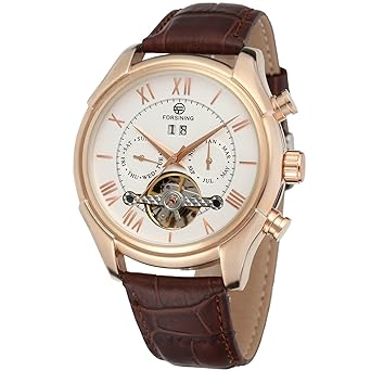 FORSINING Men's Luxury Automatic Movement Leather Strap Analog Watch with Calendar
