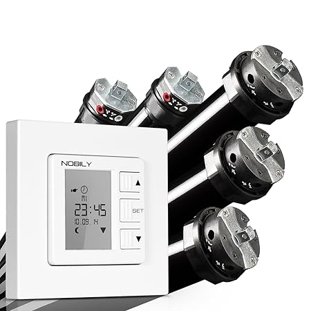 NOBILY Profi-Set elektromechanischer Funk-Rolladenmotor PR5 10/15-60 inkl. Funk-Timer (Zeitschaltuhr) Exquisit Wandsender für