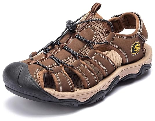 Insun Herren Outdoor Sport Sandalen Geschlossen Sandalen Leder Trekkingsandalen Strand Sandale