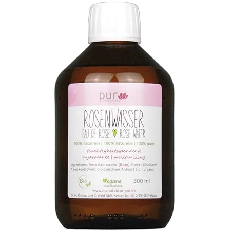 100% Naturprodukt echtes Rosenwasser Enthält keine Konservierungsstoffe, keine Duftstoffe Keine Farbstoffe. 100% Naturreines Gesichtswasser. Destillat aus reinen handverlesenen Rosenblüten