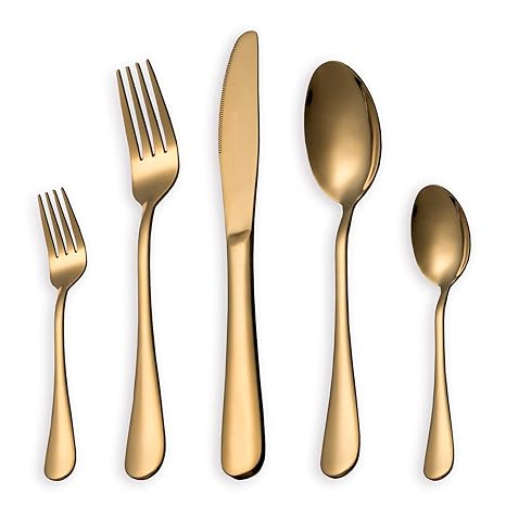 Handwerk: Gold Besteck aus 18/0 Edelstahl, komplett galvanisiert mit Titan Gold, rostfrei, hohe Härte, bleifrei, Cadmiumfrei, Phthalatfrei, BPA-frei haltbar und umweltfreundlich