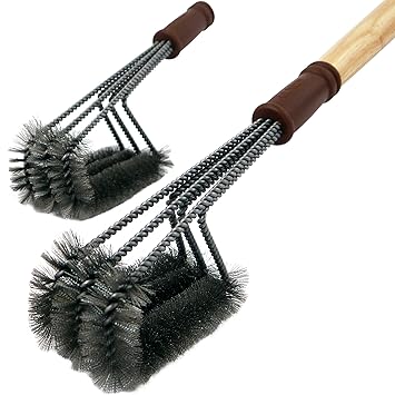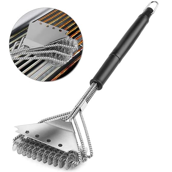 IREGRO Grillbürste Dreiseitige Edelstahl Borsten BBQ Grill Bürste Grillzubehör für Holzkohle Gas Elektro-Grill