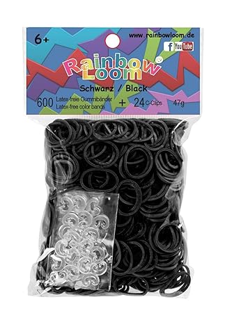 Gummibänder 'Rubber Loops' Farbe: schwarz Inhalt: 500 Gummibänder, 25 S - Klipse, 1 Häkelnadel inkl. Anleitung latexfreie Qualität, LGA getestet › Weitere Produktdetails