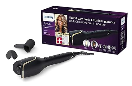 Patentierte, automatische Lockenfunktion: schnell und mühelos zu wunderschönen Locken Keramikbeschichtung: schützt das Haar, für seidig glänzende Locken 2 Temperatureinstellungen (185°C, 205°C) für unterschiedliche Haartypen Automatisches, akustisches Signal signalisiert das Ende der Stylingdauer (12 sek.) Automatische Abschaltung