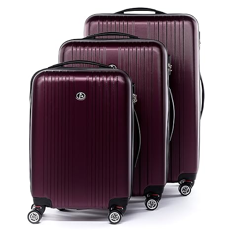 3ER KOFFERSET: Das HANDGEPÄCK ist mit seinen 55 x 35 x 20 cm perfekt für alle Airlines. Der MITTELGROSSE KOFFER (66 x 44 x 27 cm) und der GROSSE KOFFER (76 x 52,5 x 31 cm) bieten großzügiges Packvolumen für Kurztrips oder Familienreisen. Alle Maße sind Außenmaße inkl. Rollen und Griff. STABILES MATERIAL: Die hochwertige und aufwendig verarbeitete Hartschale aus 100% ABS verleiht dem Koffer enorme STABILITÄT. Das Material ist extrem ROBUST, absolut STOSSUNEMPFINDLICH und BRUCHSICHER. Die äußerst edle und matte Struktur verhindert übliche Gebrauchsspuren. KOMFORTABLER TRANSPORT: Der TELESKOPGRIFF mit Druckknopf bietet höchste Funktionalität. Die 3-stufige Höheneinstellung (92 / 97,5 / 103 cm) sorgt für eine aufrechte Haltung. Die 4 gummierten DOPPELROLLEN bieten extrem hohe Stabilität. Sie sind äußerst LEICHTGÄNGIG, WENDIG und LEISE. Egal ob holprig oder eben, die 4 Rollen bieten optimalen LAUFKOMFORT auf allen Untergründen. CLEVERES INTERIEUR: Ein KREUZGURT im Inneren sorgt dafür, dass der Inhalt nicht verrutscht. Durch einen flexiblen RV-ZWISCHENBODEN lässt sich der Kofferinnenraum blitzschnell in zwei separate Fächer unterteilen. Der Zwischenboden verfügt über ein NETZFACH und zwei zusätzliche Taschen für noch mehr ÜBERSICHT und ORDNUNG. Da die Koffer INEINANDER STAPELBAR sind, können sie überaus PLATZSPAREND aufbewahrt werden. MEHR SICHERHEIT: Das TSA-ZAHLENSCHLOSS ist ausgesprochen wichtig für Reisen in die USA. Da es mit einem speziellen Schlüssel vom Flughafen-Sicherheitspersonal geöffnet und verschlossen werden kann, werden Beschädigungen des Koffers durch gewaltsames Öffnen verhindert.