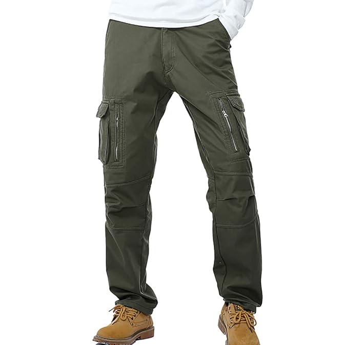 Rmine Herren Cargo Hose Viele Taschen Baumwolle Freizeithose Loose Fit Arbeitshose (Ohne Gürtel)