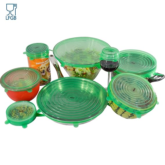 PRAKTISCHE, WIEDERVERWENDBARE DEHNBARE VERSCHLUSSDECKEL – perfekt zum Aufbewahren und Frischhalten von Nahrungsmitteln. Durch das dehnbare Material passend für alle Größen und Formen von Schüsseln, Tassen, Becher, Töpfe – egal ob rund, quadratisch oder rechteckig. Ab sofort müssen Sie keine Behälter mehr wegschmeißen,für die Sie keine Deckel haben! LUFTDICHT, KEIN ÜBERLAUFEN, GEFRIERSCHRANK UND MIKROWELLEN BESTÄNDIG – kann für das Aufbewahren von Mahlzeiten oder Getränken verwendet werden, einfach über den oberen Rand stülpen, um einen luftdichten Verschluss zu erzeugen, kein Schmutz mehr in der Tiefkühltruhe. Passt sich allen Materialien wie Glas, Töpfen, Pyrex, Plastik und Metall an. HOHE QUALITÄT, BPA-FREI, VIELSEITIG IN KÜCHEN UND FÜR NAHRUNGSMITTEL EINSETZBAR –immer wieder verwendbar, strapazierfähiges Material, eine kosteneffektive Alternative zu Frischhaltefolie oder Alufolie und vermeidet Geruchsbildung LEICHT ZU REINIGENDE VERSCHLUSSDECKEL – einfach mit warmem Wasser oder Geschirrspülmittel reinigen oder ab damit in die Geschirrspülmaschine – einfach abzuwischen