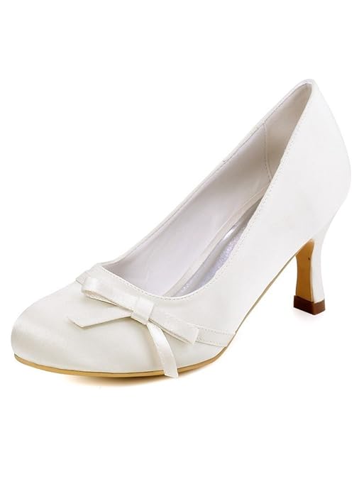 Emily Bridal Brautschuhe Frauen Satin Kitten Heel Geschlossene Zehe Pumps