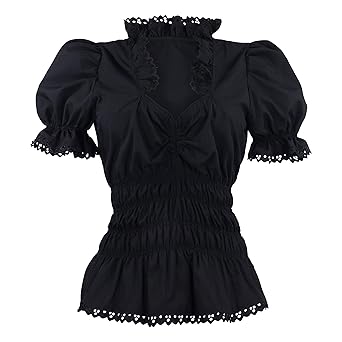 By Johanna Trachtenbluse Damen Trachten Blusen Rüschenbluse Dirndlbluse Trachtenmieder Kariert Rot Weiß Kurzarm Oktoberfest F