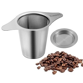 ???? Praktischer Filter für Tee und Kaffee, Doppelzweck perfekt im Haushalt oder im Büro, Umweltfreundliche und sparsame Alternative zu Filtertüten aus Papier. ???? FDA und LFGB zertifizierter Dauerfilter, Völlig aus hochwertigem 18/8 Edelstahl, Rostfrei und Geruchsneutral, Giftlos und Sicher. ???? Dank des Doppel-Mesh-Designs lässt sich der Kaffee oder Tee problemlos filtern, ohne jeden Kaffeesatz oder Teeblätter in Ihrem Getrank. ???? Mit 2 Griffen, weit passend für die meisten Tassen und Kannen von 48 bis 120mm Durchmesser. Kommen Sie mit Deckel/Abtropfschale, als Abdeckung auch um das Sieb auf dem Tisch abzustellen. ???? Leicht zu reinigen. Spülmaschinenfest.