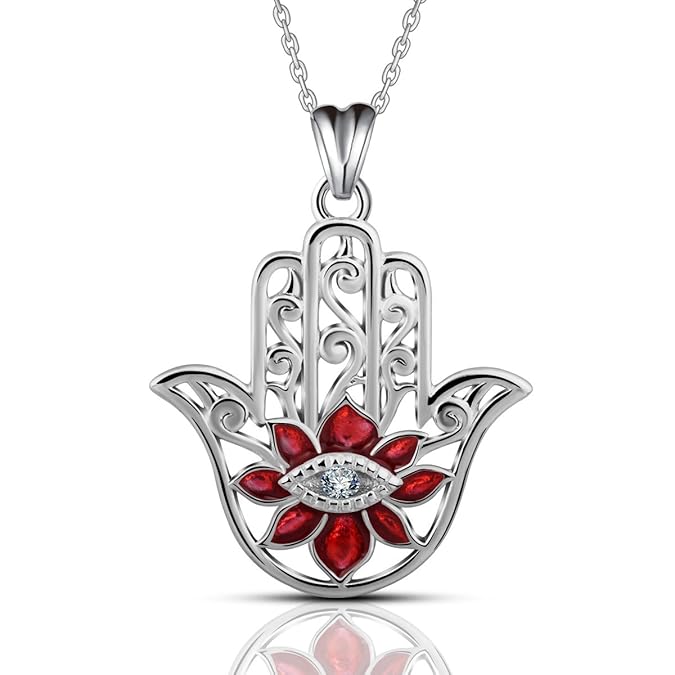 ?DESIGN KONZEPTION? - Die Hamsa ist ein nahöstliches Glückssymbol, das dazu bestimmt ist, das Böse abzuwehren und seine Trägerin zu schützen. Dieses handgemachte Stück ist eine einzigartige, modische Interpretation eines traditionellen kulturellen Charmes, der für jeden Träger perfekt ist. ?RHODIUM FERTIG 925 STERLING SILBER? - In handarbeit gemacht, um den test der zeit zu bestehen. 925 sterling silber besteht zu 92,5% aus silber, gemischt mit legierungen, um stärke und haltbarkeit zu verleihen. Der gewöhnliche schmuck aus sterlingsilber wird nach langer tragezeit schwarz und beim Rhodium-plattierungsprozess entspricht er einer schutzfilmschicht, um eine oxidation zu verhindern. ?KEINE HARM FÜR IHRE GESUNDHEIT? - Alle unsere 925 Sterling Silber Produkte sind hochwertig verarbeitet und vor dem Anlaufen geschützt. Jedes Stück ist bleifrei, Nickel-frei und Cadmium-frei, bestanden SGS-Erkennungstest. Langes Tragen sorgt für gute Gesundheit. ?PERFEKTE GESCHENKIDEE? - Kommt in einer eleganten Geschenk box, einem kostenlosen Stück Silber-Polish-Tuch zum Reinigen der Halskette und 45.7CM 925 Silber Kette sichert mit Federring Verschluss. Ideale Geschenke für Geburtstag, Valentinstag, Muttertag, Erntedankfest, Weihnachten, Neujahr, Jahrestag, Gedenktag. Glückwunsch, Abschlussgeschenk zu Ihrer Freundin, Schwester, Tochter, Ehefrau oder Mutter. ?SICHERHEITSGARANTIE? - Wir versprechen erstklassigen Service, einschließlich schnellem Versand, guter Kommunikation und Amazon-Rückerstattungsrichtlinien.