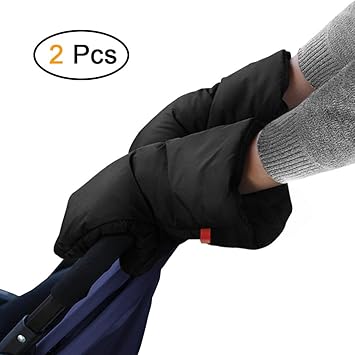 Kinderwagen Handschuhe Handwärmer mit Warme Fleece Wasserfest Atmungsaktiv und Windfest für Kinderwagen Kinderwagenmuff (Schw