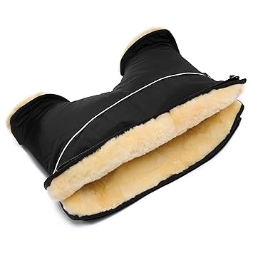 Naturasan Lammfell Handwärmer, warmer Kinderwagen Handmuff mit Lammfell Innenfutter, Muff, Kiwa, Buggy, Jogger, Radanhänger,