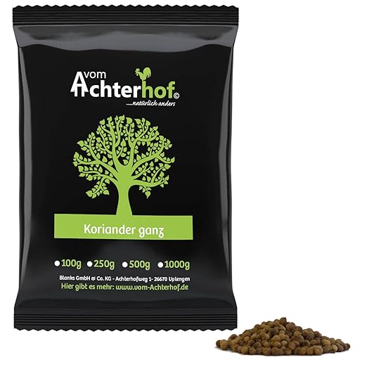 PREMIUM QUALITÄT - 250g ganzer naturbelassener Koriander aus Osteuropa - hoch aromatisch - hochwertiger Koriander zum Kochen und Würzen von Speisen - im praktischen Vorratspack Nachfüllpackung - Küchengewürze ohne Geschmacksverstärker. 100% GENUSS - Verwenden Sie unsere herbwürzigen Koriander Samen zum verfeinern von asiatischen & indischen Gerichten Fleisch Fisch Geflügel Curry Chutney oder als Brotgewürz. Reiner Cilantro 100% HOCHWERTIGE ROHSTOFFE - Hergestellt aus reinen Koriander Samen ganze Körner hocharomatisch pikant leicht süßer Nachgeschmack - perfekt auch für Gewürzmischungen - Coriandersamen Coriander. AROMABEUTEL - Liebevoll von Hand abgefüllt in einem wiederverschließbaren Aromabeutel, zur Sicherung des außergewöhnlichen Geschmacks INKLUSIVE GRATIS RATGEBER - Sie erhalten zu jedem unserer edlen Produkte einen gratis Gourmet Ratgeber über die Welt von Krautberger als E-Book von uns geschenkt! Für eine gesunde und abwechslungsreiche Ernährung › Weitere Produktdetails