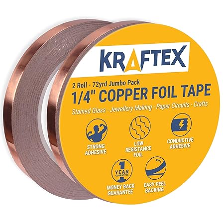 VON GITARRISTEN FU?R GITARRISTEN – Keine Interferenzen mehr durch schlechte Abschirmfarbe. Stattdessen ko?nnen Sie dank unserem Kupferband einen perfekten Faraday’schen Ka?fig bauen, um das Beste aus Ihrer Gitarre herauszuholen. Es ist die perfekte Lo?sung, um den Hohlraum und den Pickguard Ihrer Gitarre einfach und zuverla?ssig auszufu?llen und gegen EMI, EMF und RFI abzuschirmen. Falls Sie Hilfe dabei beno?tigen, folgen Sie den Anweisungen in der ausfu?hrlichen Produktbeschreibung. DAS GEHEIMNIS HINTER PERFEKT KLINGENDEN GITARREN – Sie haben richtig gelesen! Kupferband spielt eine zentrale Rolle bei der Reduzierung la?stiger elektrischer Sto?rungen und der Perfektionierung Ihres Klangbildes. Es ist eine viel bessere Lo?sung als ein Graphit- oder Aluminiumband. Unabha?ngig davon, ob Sie Anfa?nger oder Profi sind, das Kraftex Kupferband, das auf Ihrer Gitarre angebracht wird, kann den Klang Ihrer Gitarre im Handumdrehen verbessern. ZUVERLA?SSIGES EMI / RFI ABSCHIRMBAND – Schu?tzen Sie Ihre Gera?te einfach und bequem vor elektromagnetischen und hochfrequenten Sto?rungen. Von summenden Gitarren bis hin zu Computerkabeln bietet das Kraftex Kupferband eine schnelle und zuverla?ssige Lo?sung. Das Klebemittel ist stark, flexibel und hat eine hervorragende Leitfa?higkeit, sodass Ihre Elektrogera?te optimal geschu?tzt werden. ERWECKEN SIE IHRE KREATIVEN IDEEN ZUM LEBEN – Bringen Sie neue Farben und Formen in eines Ihrer Bastelprojekte. Dank dem starken Klebstoff la?sst sich das Band hervorragend verformen und anpassen und haftet auf fast jeder Oberfla?che und dank der stylischen Kupferfarbe ko?nnen Sie mit diesem vielseitigen Klebeband Ihrer Fantasie freien Lauf lassen. 100% ZUFRIEDENHEITSGARANTIE – Die hochwertige Kupferfolie, die gewachste Papierunterseite und der besonders widerstandsarme Klebstoff machen unser Klebeband zum Besten auf dem Markt, daher sind wir uns sicher, dass Sie unser Band lieben werden. Sollten Sie dennoch nicht zu 100% zufrieden sein, werden wir Ihnen den Kaufpreis vollsta?ndig zuru?ckerstatten. Legen Sie jetzt unser Kupfer Klebeband in Premiumqualita?t in Ihren Einkaufswagen, Sie werden von der Qualita?t begeistert sein!