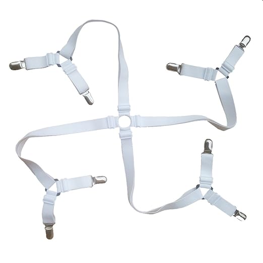 Angelkiss 4er-Pack Verstellbare Elastische Bettlakenspanner Betttuchspanner Spannbettlakenhalter mit Metallklammern für Bettlaken und dünne Bettdecken (weiß)