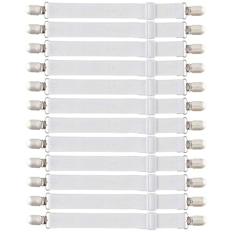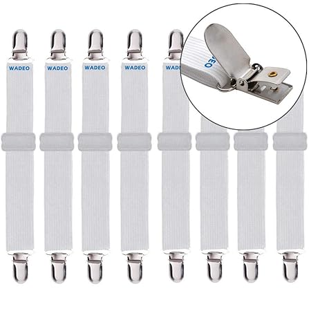 DUOUPA Verstellbare Betttuchspanner,Elastische Bettlakenspanner ,Lakenspanner mit Metallklammern Spannbettlakenhalter Weiß,12