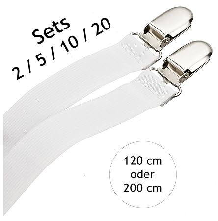 Einfache Befestigung - Befestigen Sie diesen Hosenträger mit den Klemmen an Ihrem Bettblech.