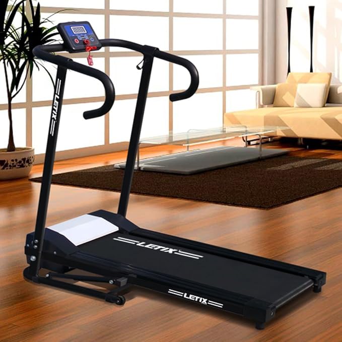 maxVitalis Laufband mit elektrischem Motor bis 10 km/h, klappbar, Belastbarkeit bis 120 kg, übersichtlicher LCD-Display, 3 Tr