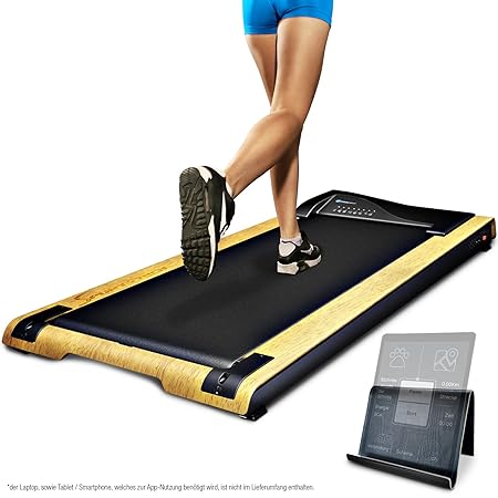 FITNESSREVOLUTION: Ob Sie das DFT200 für einen lockeren Spaziergang während der Arbeit oder als vollwertiges Laufband mit einer Geschwindigkeit von bis zu 7,1 km/h nutzen, entscheiden Sie. Hauptsache Sie bringen Bewegung in Ihren Arbeitsalltag und machen Ihren Arbeitsplatz zu Ihrem Trainingsplatz, der Ihren Alltag revolutionieren wird. GESUNDHEIT: Langes Sitzen am Schreibtisch kann auf Dauer krank machen. Bewegtes Arbeiten verhindert krankmachende Folgen von Sitzen. Denn Bewegung während der Arbeit hat neben einer erheblichen Gewichtsreduktion, Krankheitsprävention und einer deutlichen Verbesserung der Ausdauer viele Gesundheitsvorteile für Sie. BESSER ARBEITEN: Regelmäßige Bewegung während der Arbeit verstärkt die Durchblutung des Gehirns und die Sauerstoffaufnahme. Konzentrationssteigerung und Stressreduktion durch ergonomisches Bewegen und Verbesserung des Schlafs durch Fitness im Office. Sparen Sie Zeit durch Gehen, Laufen und Joggen schon bei der Arbeit. EXTRAS: Die praktische Tablet-Halterung lässt Sie stets alle wichtigen Informationen überblicken und in eine nützliche Wandhalterung umfunktionieren. Mit Hilfe der Fitness-App in Kombination mit der Bluetooth-Funktion haben Sie u.a. eine gute Übersicht über Ihre verbrauchte Kalorienanzahl, Schrittanzahl oder gelaufene Strecke und Sie können Ihre Trainingserfolge speichern und verfolgen. PLATZSPAREND: Hier steht Ihnen nichts mehr im Weg! Schnelles Verstauen des Fitnessgeräts durch integrierte Standfüße – kombinieren Sie das under desk Laufband mit einem höhenverstellbaren Tisch für maximale Kompatibilität. Mit Hilfe der praktischen integrierten Standfu?ße lässt sich das Laufband überall verstauen oder auch in die Wandhalterung einhängen. Das Laufband passt unter jeden (erhöhten) Schreibtisch.