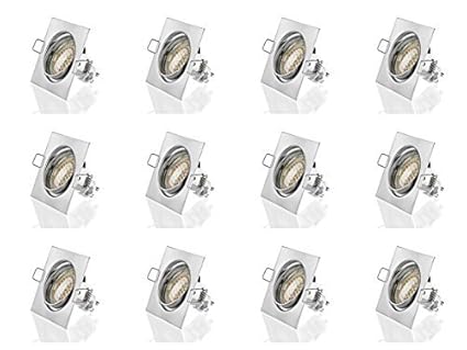 10 x Stück Eckig form Einbaurahmen - inkl. GU10 Fassung für 230V Einbaurahmen aus hochwertigem Metall | Eckig - Optik: Chrom gebürstet | Schwenkbar Einbaurahmen Außendurchmesser: 80mmX80mm | lochdurchmesser: Ø68-76mm [min.68mm-max.76mm] Geeignet für standard Spot-Bohrungen | Geeignet für jedes Leuchtmittel mit 50 mm Durchmesser GU10 Keramik-Fassung werden mitgeliefert - › Weitere Produktdetails