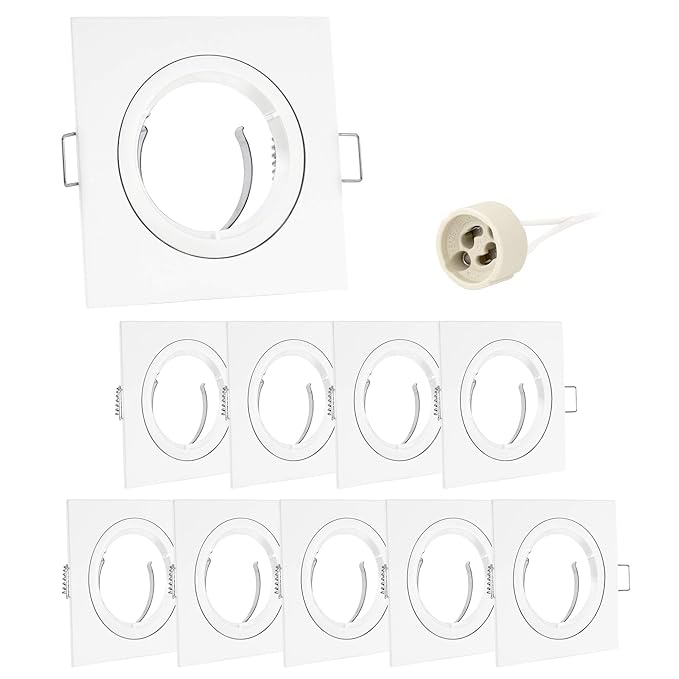 10 x Stück Eckig form Einbaurahmen - inkl. GU10 Fassung für 230V