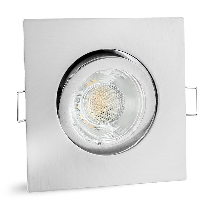 OBERFLÄCHE: LED Decken Strahler von linovum - Edelstahl Optik gebürstet schwenkbar aus massivem Druckguss und somit absolut rostfrei OHNE TRAFO: Die LED-Einbauleuchte einfach direkt an 230V Wechselstrom anschließen, die GU10 Fassung ist im Lieferumfang enthalten SCHWENKBAR: Gestalten Sie das Licht nach Ihren Wünschen - Einfach schwenken und das Licht an die gewünschte Stelle bringen LICHT ZUM WOHLFÜHLEN: Der Warmweiße Farbton mit 2700 Kelvin erzeugt sehr gemütliches Licht bei 6W - ideal als Ersatz für 50W Halogen ABMESSUNGEN für die Montage: Außenabmessung 90x90mm - Lochmaß Durchmesser: 68-74mm - Einbautiefe inkl. Leuchtmittel: 57mm › Weitere Produktdetails