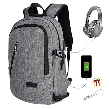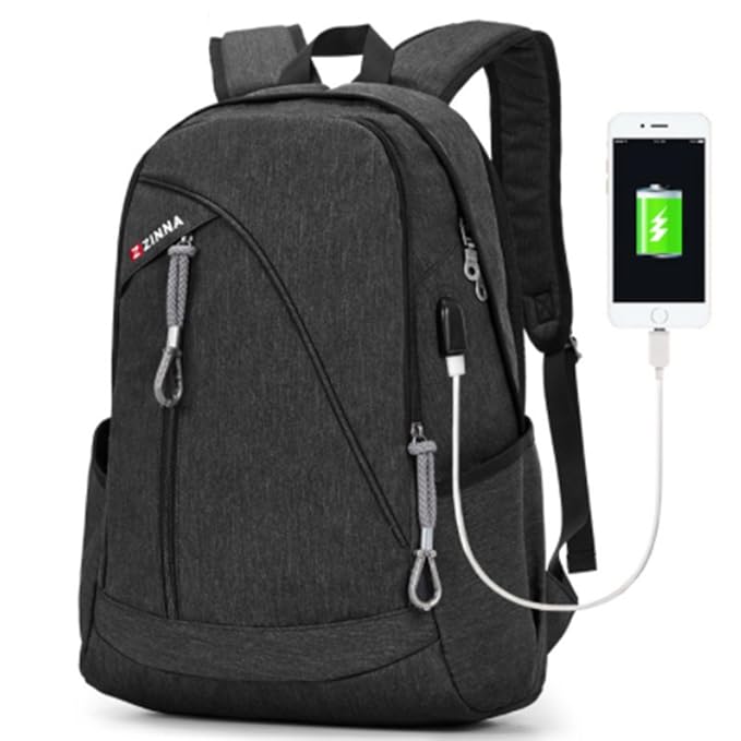 Rucksack mit Einzigartiges Design:Ein separates Laptop-Fach halten 15,6 Zoll Laptop sowie 15 Zoll,14 Zoll und 13 Zoll Macbook/Laptop.Ein geräumiges Abteil für den täglichen Bedarf,Tech-Elektronik-Zubehör.Vorderes Fach mit vielen Taschen,Stifttaschen und Schlüsselanhänger-Haken,machen Ihre Artikel organisiert und leichter zu finden. Ergonomisches Design:Zwei 'S' Curve Gepolsterte Schultergurte mit extra dickem und ultra-atmungsaktivem Design,bietet leichte Trage- und Kraftverstärkung. USB-Anschluss-Design:Mit integriertem USB-Ladegerät außen und integriertem Ladekabel im Inneren bietet dieser USB-Rucksack eine bequemere Möglichkeit,Ihr Telefon während des Gehens aufzuladen. Bitte beachten Sie,dass dieser Rucksack sich nicht selbst antreibt,USB-Ladeanschluss bietet nur einen einfachen Zugang zu berechnen. Material&Größe:Laptoprucksack ist aus hochwertigem Oxford-Gewebe gefertigt und bietet eine hohe und langlebige Leistung mit minimalem Gewicht.Für besondere Langlebigkeit ist das Oxfordstoffmaterial wasserfest, reißfest und kratzsicher.Größe ist 32 x 20 x 46 cm,Kapazität ist 35L. Mehrzweckverwendung&Casual:Der Daypack passt zu vielen Gelegenheiten.Unisex für Männer und Frauen.Sie können es in die Schule tragen, College, Wandern, Einkaufen, Radfahren, Reisen, Dating, etc.