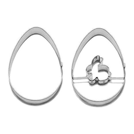 Ausstecher Linzer Ei mit Hase + Ei Osterausstecher Osterplätzchen, zweiteilig, je Ei ca. 5.5 x 4 cm, Edelstahl rostfrei, spül