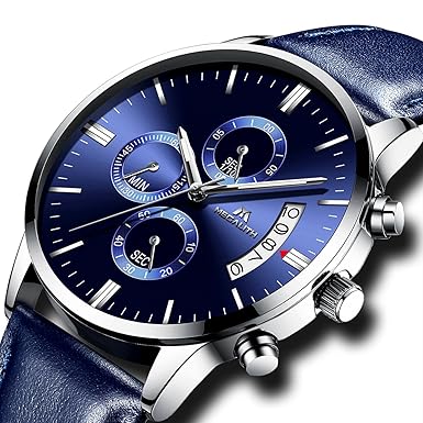 ?Multifunktionsdesign?: Drei Multifunktions-Hilfszifferblätter unterstützen Stoppuhr und Datumskalender ?Bewegung und Batterie?: Japanisches Quarzwerk und Batterie sorgen für genaue Zeitmessung ?3ATM täglich wasserdicht?: Das tägliche Leben wasserdicht, kann Schweiß, versehentlichen Regen oder Spritzwasser tragen, aber nicht zum Baden, Schwimmen, Tauchen und so weiter ?Echtes Lederband?: Strapazierfähiges und atmungsaktives schwarzes Echtlederband passt zum täglichen Tragen. Band länge: männer standard, band breite: 20mm ?Kauf ohne Sorgen?: 24 Monate Garantie und 90-Tage 100% volle Rückerstattungsgarantie. Perfekte Geschenkbox mit Bonus, diese Armbanduhr wird ein perfektes Geschenk für Sie selbst oder für diesen speziellen jemand sein