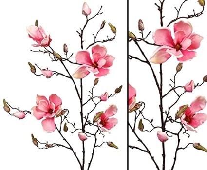 artplants Set 2 x Kunstblume Magnolienzweig LILO, 4 Blüten, Knospen, rosa, 110 cm - 2 Stück Seidenblumen Magnolie/Kunstzweig