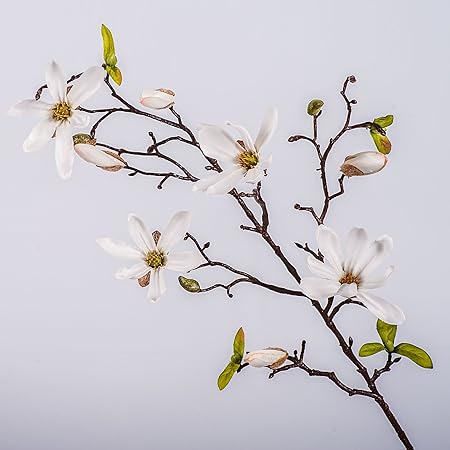 Eine künstliche Magnolie mit Blüten und Knospen.