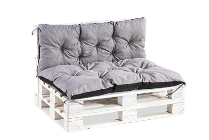 HOCHWERTIGE KISSENFÜLLUNG: Die Paletten-Sitzkissen mit Karo-Struktur und Knöpfen bestehen aus einer bequemen Schaumstoff-Platte (Raumgewicht: 25 kg/m³), die Seiten- und Rückenkissen aus Schaumstoffflocken und sind die perfekte Auflage für Ihre Paletten Möbel als Sofa oder Sessel
