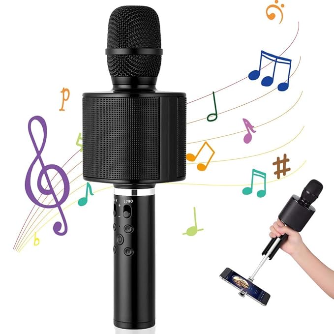 3-in-1 Portables Karaoke-Mikrofon: Dank seiner handlichen Größe können Sie irgendzeit und irgendwo Spaß haben. Durch die 3-in-1-Technologie kann es als drahtloses Mikrofon, Bluetooth-Lautsprecher. Es kann auch Lieder über ein mobiles Karaoke aufzeichnen. Und Ihre Aufzeichnungen werden auf Ihrem Handy gespeichert. Hohe Audioqualität: Zwei eingebaute Lautsprecher bringen Sie in ein unsichtbares Vokalkonzert mit beeindruckender Gesangsperformance. Das Mikrofon verfügt über drei Filterkopfschichten, die den beim Singen erzeugten Lärm stark reduzieren können. Und es ist mit professionellen Audio-Processing-System ausgestattet, um Ihnen ideale Singerfahrung zu bieten. Zweiwegverbindungen: Das Karaoke-Mikrofon unterstützt Bluetooth-Verbindung und 3,5-mm-Audiokabelverbindung. Kein Grund mehr, sich um Inkompatibilitätsprobleme zu kümmern. Lange Standbyzeit: Mit 2600mAh Lithium-Batterie wird das Mikrofon innerhalb von 3-4 Stunden vollständig geladen, und Sie können es für 5-8 Stunden kontinuierlich verwenden. Bestes Geschenk für verschiedene Zwecke: singen in KTV, in Versammlung, in Familie, beim Reisen, oder Auto-Stereoanlage, Instrumentenaufnahme, Interviews, live usw..A einzigartiges Geschenk für Ihre Freunde oder Familie. › Weitere Produktdetails